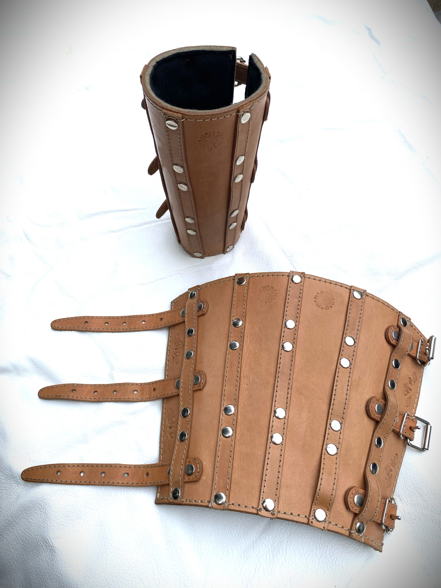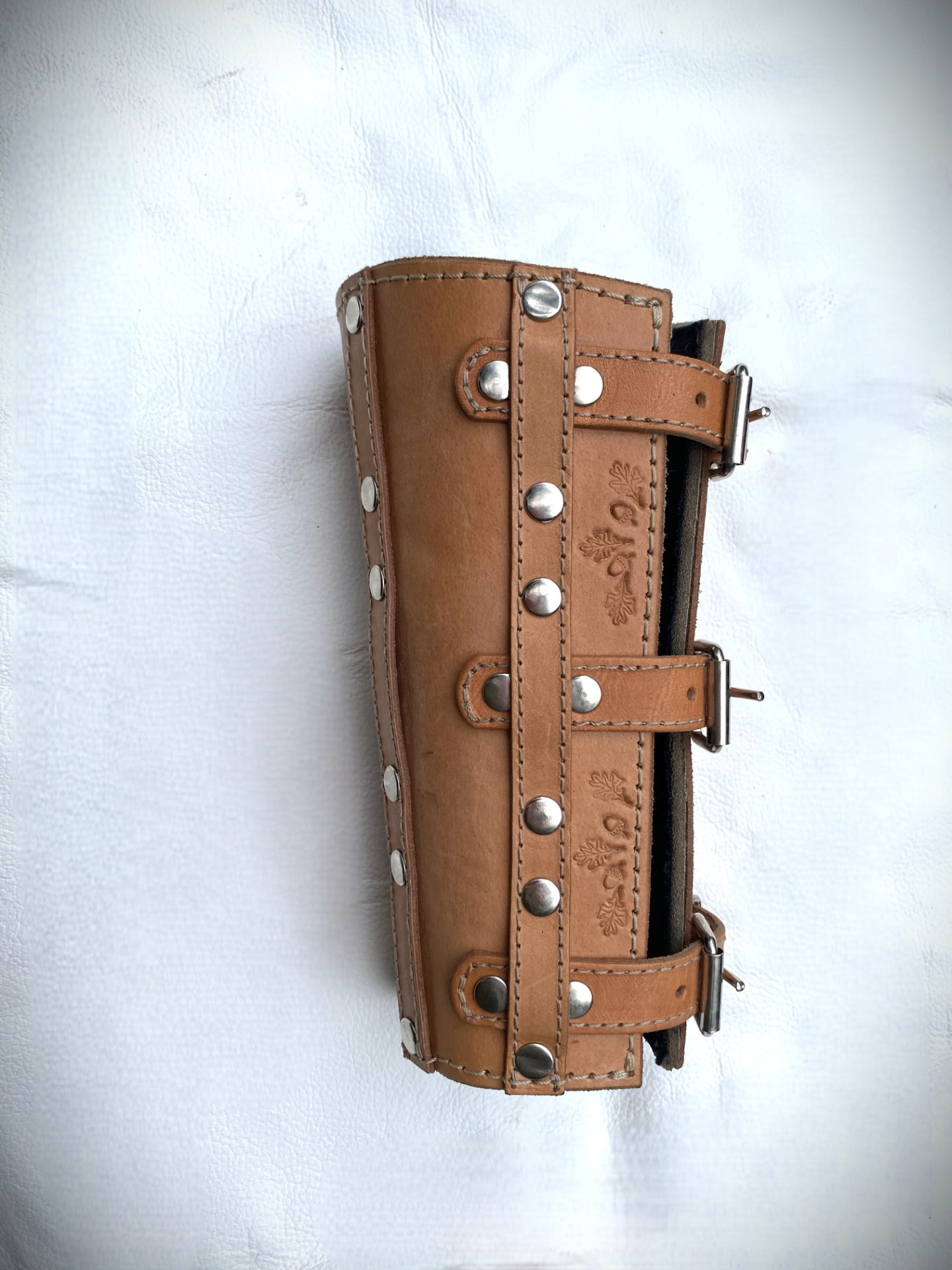 Nátepník na predlaktie 2 kusy, upínanie sa prispôsobí hrúbke ruky. Vyrobené z kože, vnútorná strana podšitá mäkkým flisovým materiálom.