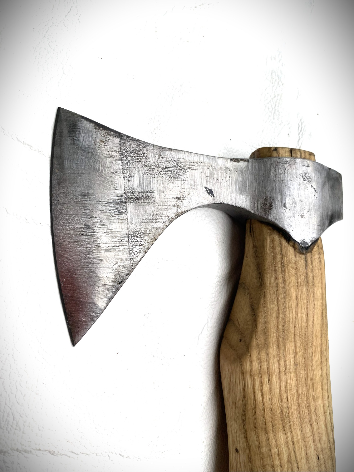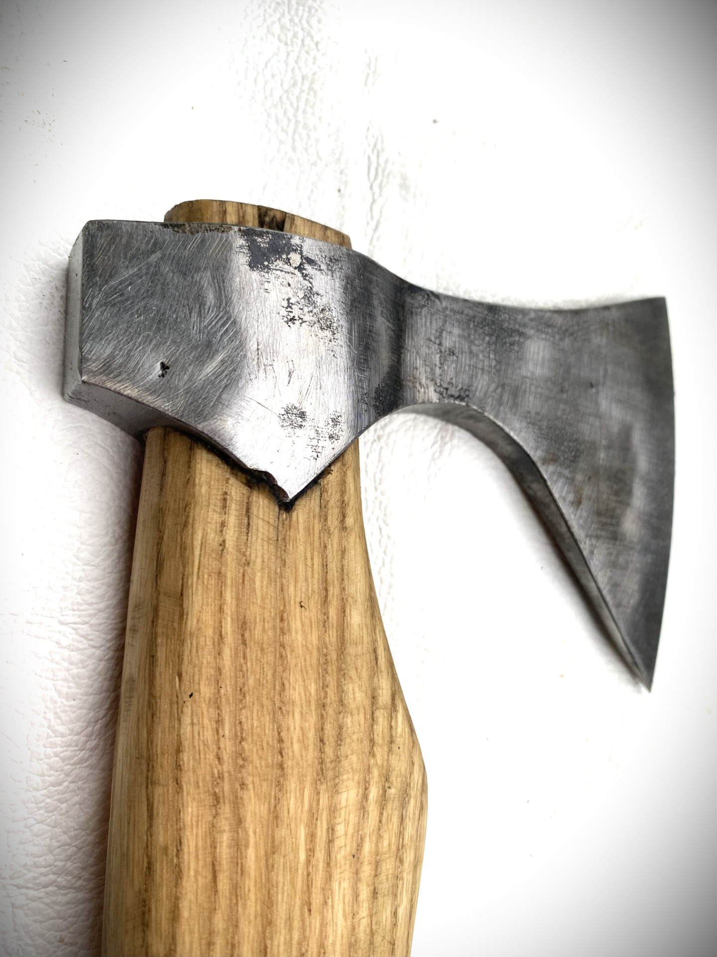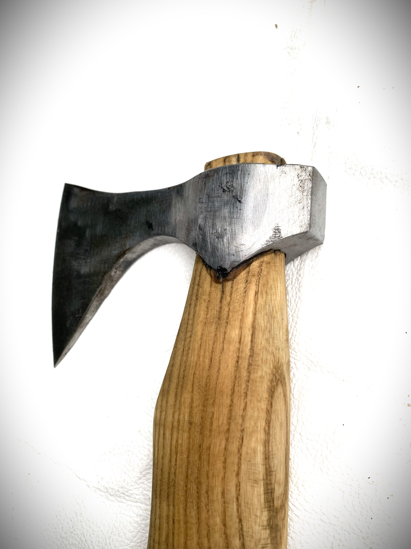 Opasková sekera ručne kovaná, pracovná, materiál oceľ, rúčka jaseň. Veľmi ostrá a pevná.