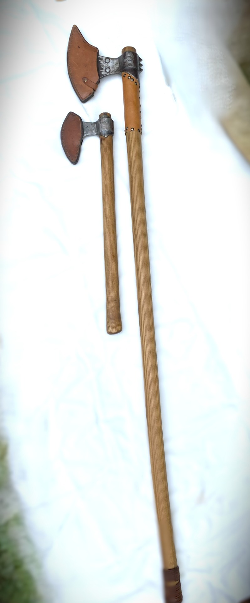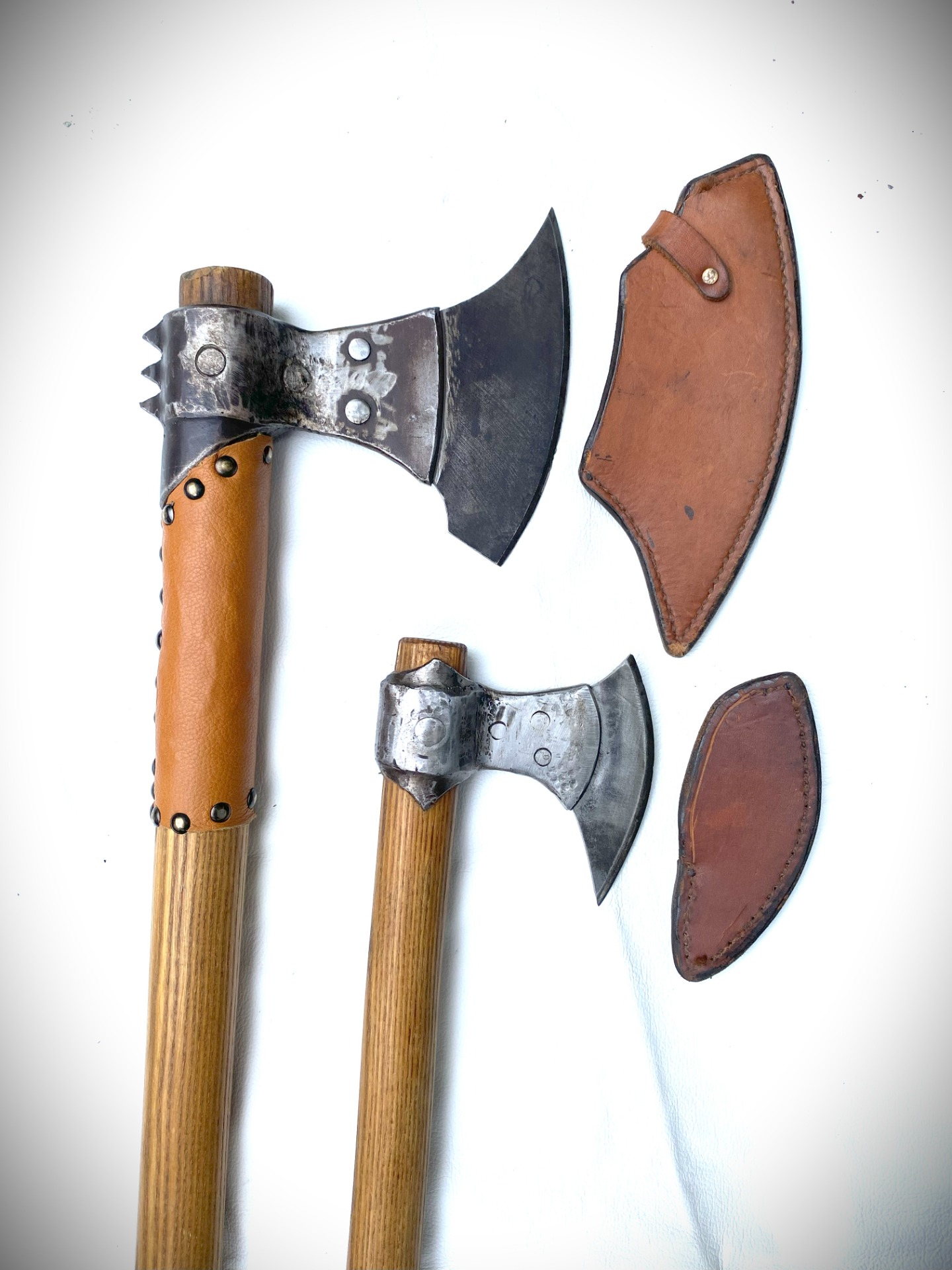 Sada 2 ks historická sekera Dánska krátka + dlhá, ručne kované, ostré. Materiál oceľ, rúčka jaseň. Púzdro koža.