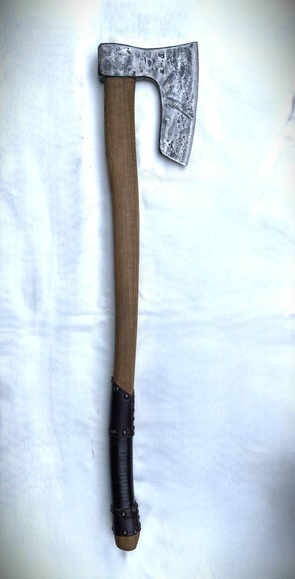 Stará historická sekera bradatica, používaná v období dobývania Anglicka a Francúzska. Veľká, masívna, ťažká, dvojručná. Materiál oceľ, rúčka buk. Súčasťou sekery je kožené púzdro.